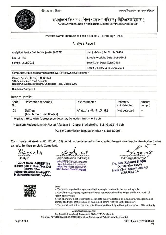 বাংলাদেশ সাইন্স ল্যাব (BCSIR) এবং থেকে ল্যাব টেস্টেড।