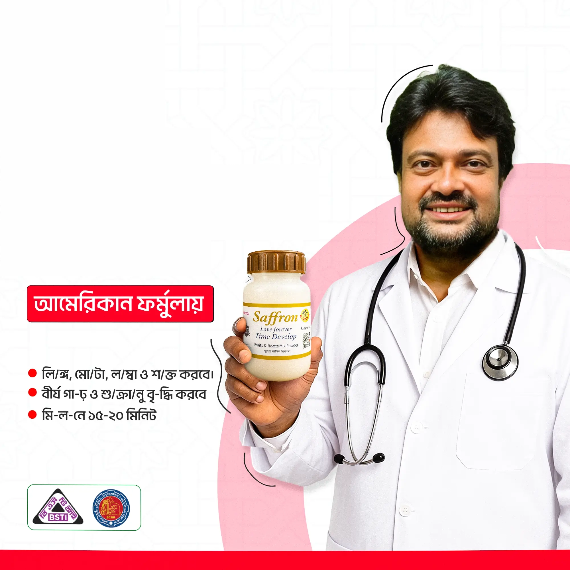 Saffron রয়েছে মাল্টিভিটামিন এর ৪৯টি উপাদান আছে জিনসিং, আলকুশি, সাফেদ মুসলি, পানিফল, শিমুল মূল, শতমূল, তালমাখনা, মাশরুম, আখরোট, আফ্রিকান খুসিলা, কস্তুরী এর মতো মহামূল্যবান বহু উপাদান