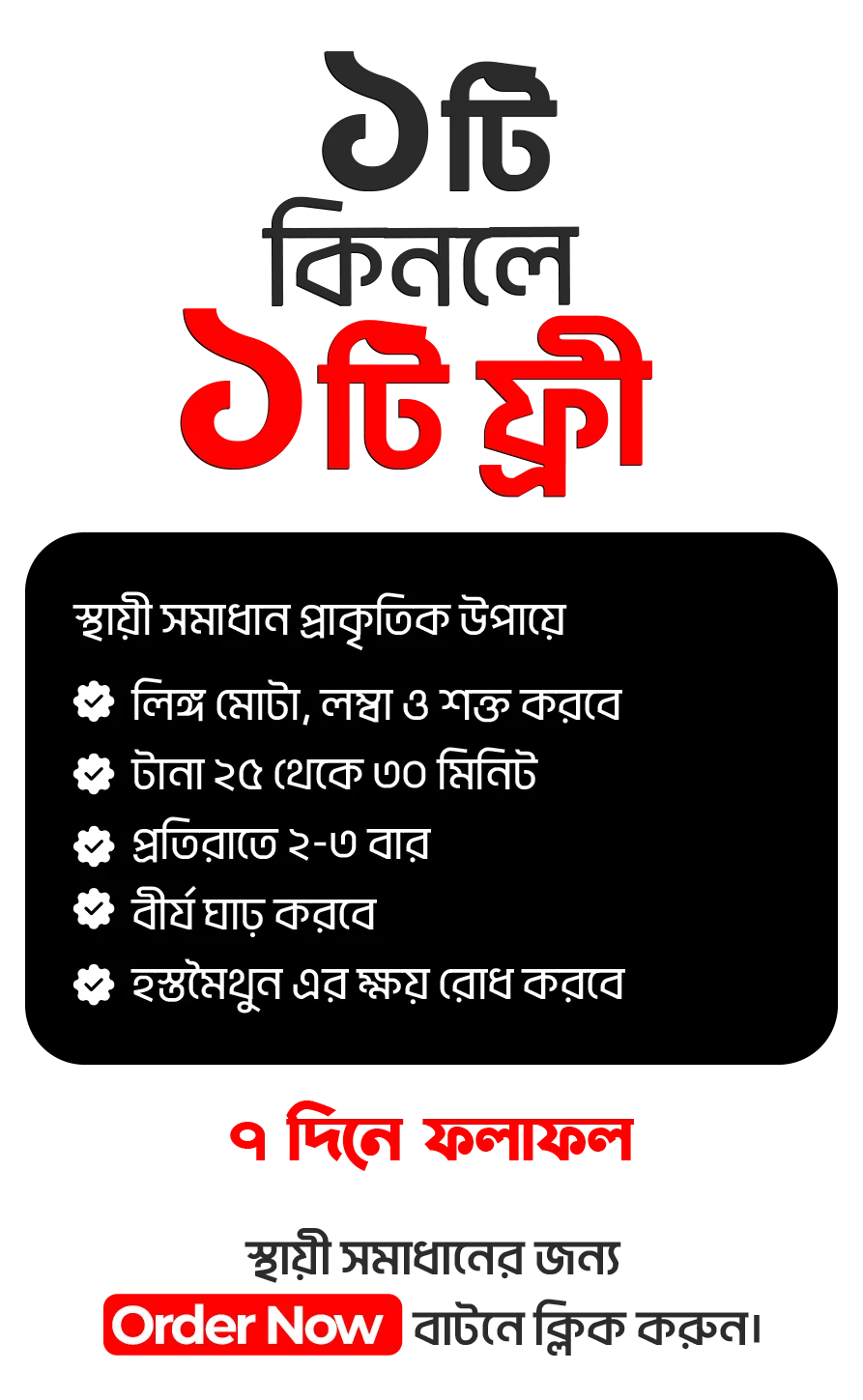 আমাদের প্রোডাক্ট সেবন করে কাজ হয়নি এমন কথা কেউ বলতে পারলে ৩ গুন টাকা রিটার্ন দিব। আমাদের প্রোডাক্ট টি BSTI অনুমোদিত, সম্পূর্ণ পার্শ্ব প্রতিক্রিয়া মুক্ত।
